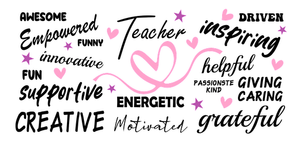 A card full of description on why a teacher is important.UV Transfers