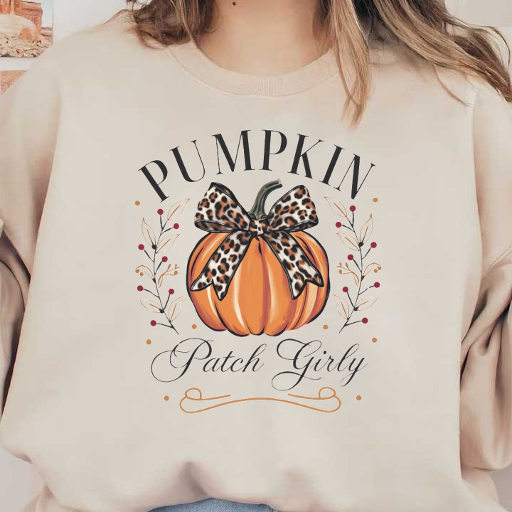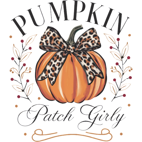 A charming autumn design featuring a pumpkin adorned with a leopard print bow and floral accents, perfect for fall enthusiasts. heat press transfers