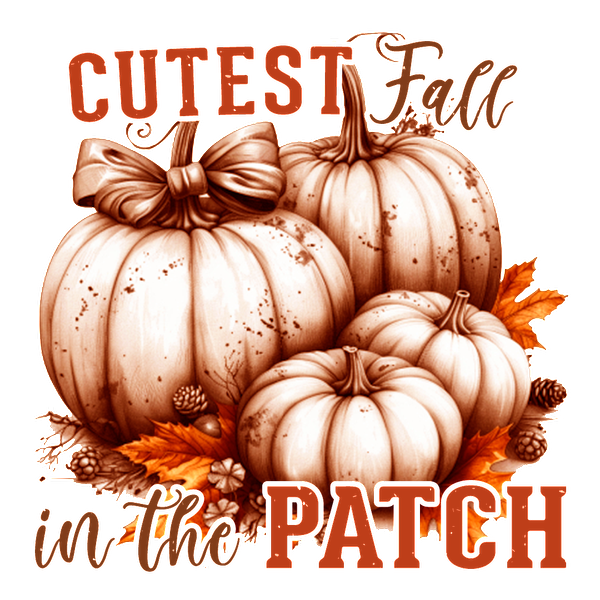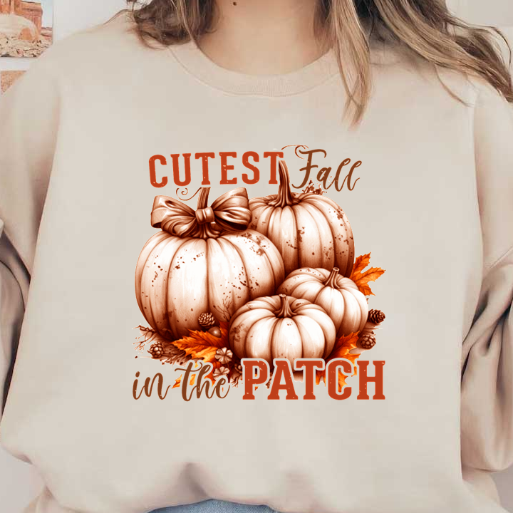 A charming illustration featuring soft, decorative pumpkins with a bow, surrounded by autumn leaves, celebrating fall with style. dtf prints