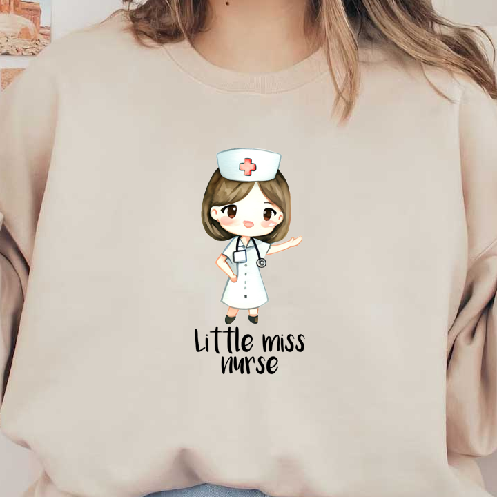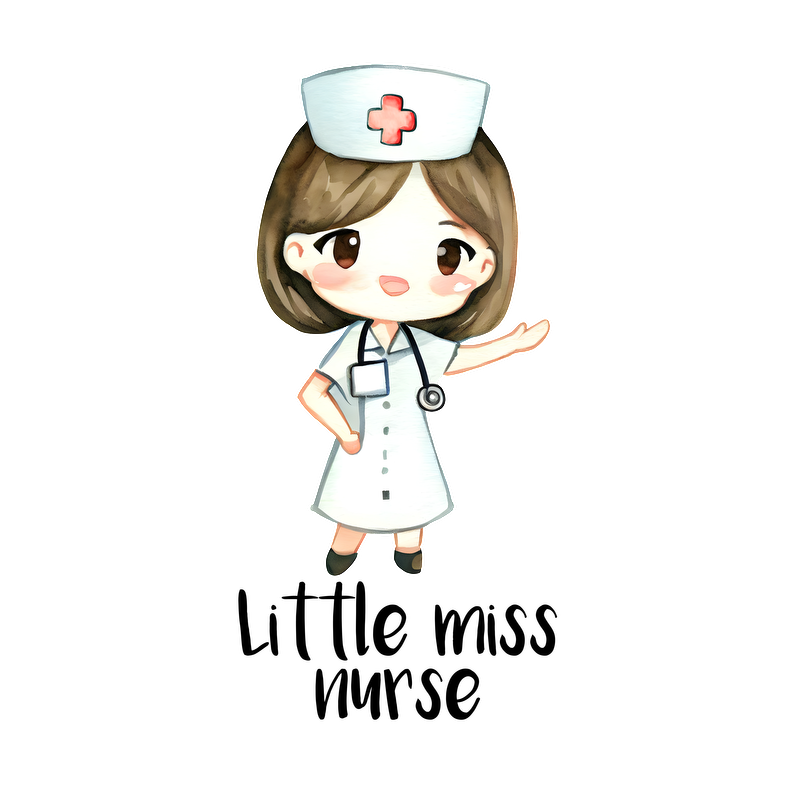 A cute cartoon nurse in a white dress, complete with a stethoscope and nurse's cap, cheerfully gesturing with a smile.DTF Transfers