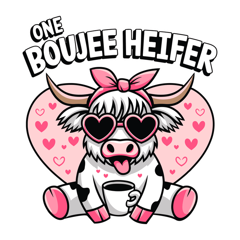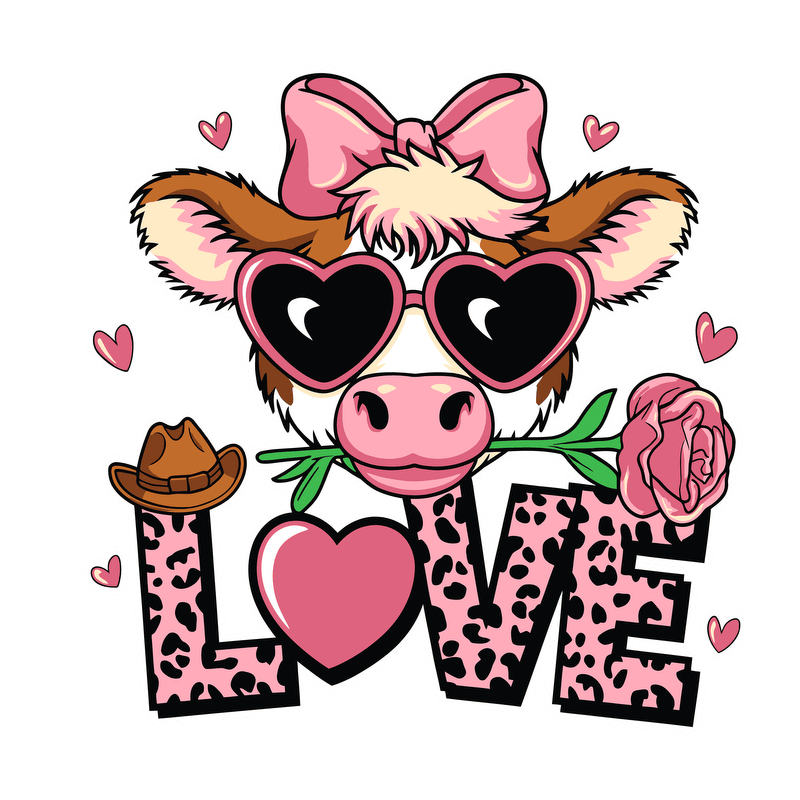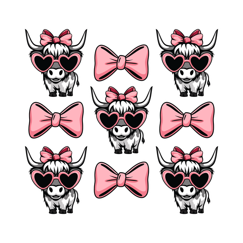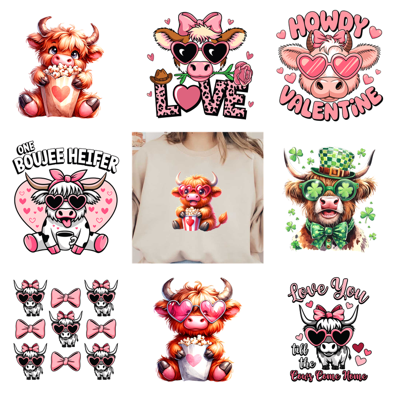 A cute cow-themed t-shirt with various designs.DTF Transfers