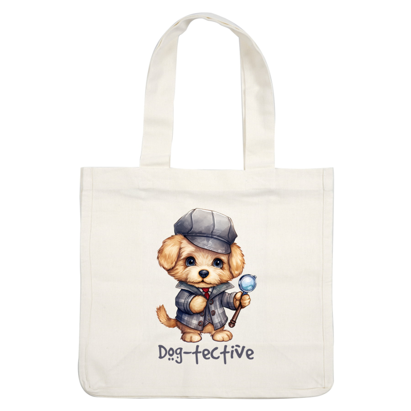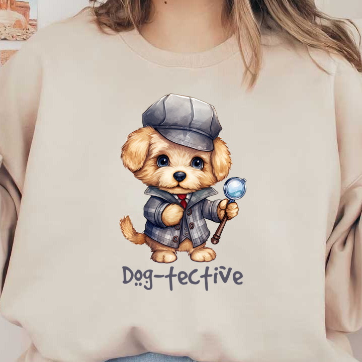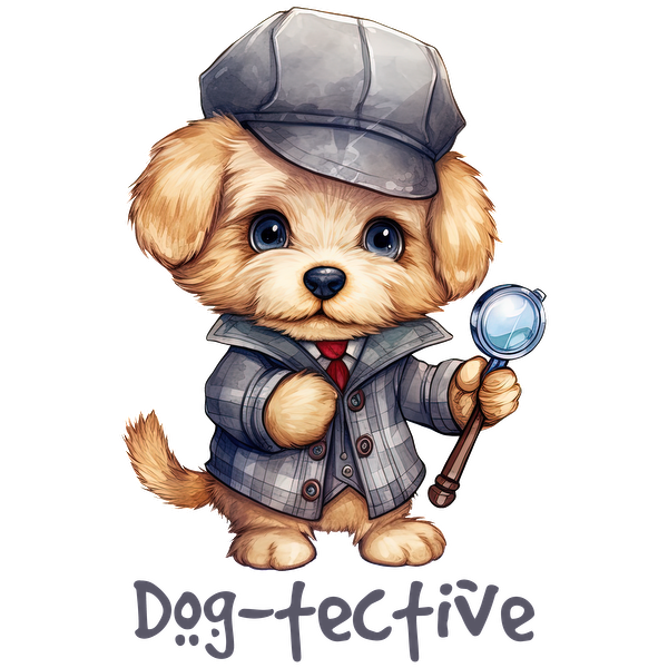 A cute puppy dressed as a detective, complete with a hat and magnifying glass, exudes charm and curiosity. dtf prints