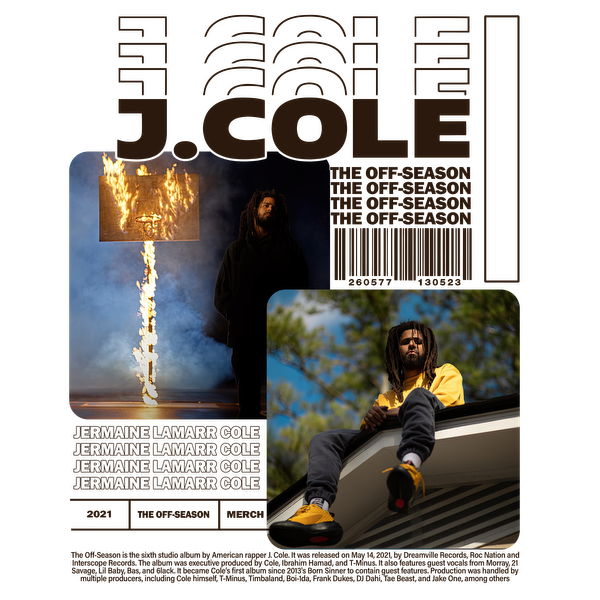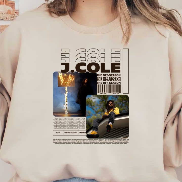 A dynamic promotional graphic featuring J. Cole amidst dramatic visuals, showcasing his distinctive style and the album "The Off-Season."DTF Transfers dtf transfers