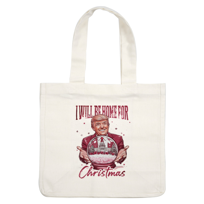 A festive design featuring a suit-clad figure holding a snow globe depicting the Capitol, topped with the phrase "I Will Be Home for Christmas."DTF Transfers dtf transfers dtf transfers