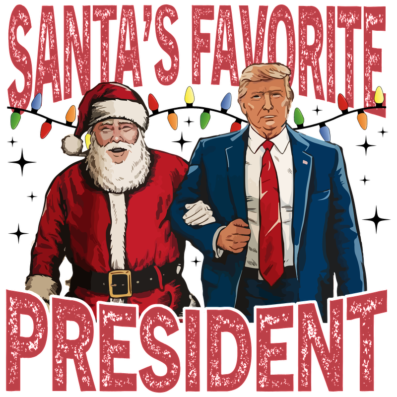 A festive design featuring Santa and a suited figure, with the text "Santa's Favorite President" in bold, colorful lettering.DTF Transfersdtf regular iron dtf prints