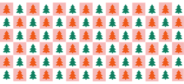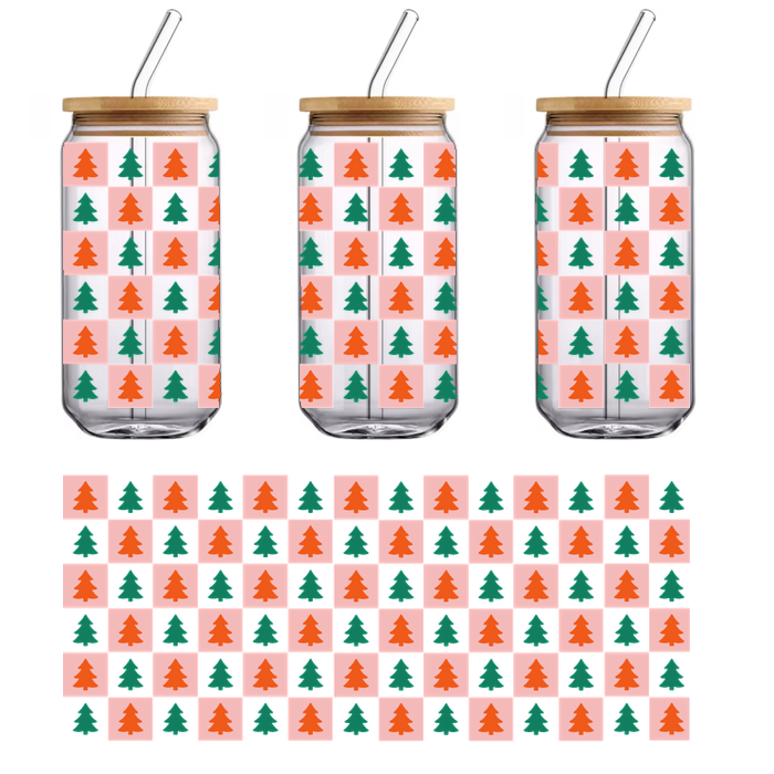 A festive pattern featuring alternating green and orange trees on a pink background, perfect for holiday-themed designs.UV Transfers dtf prints