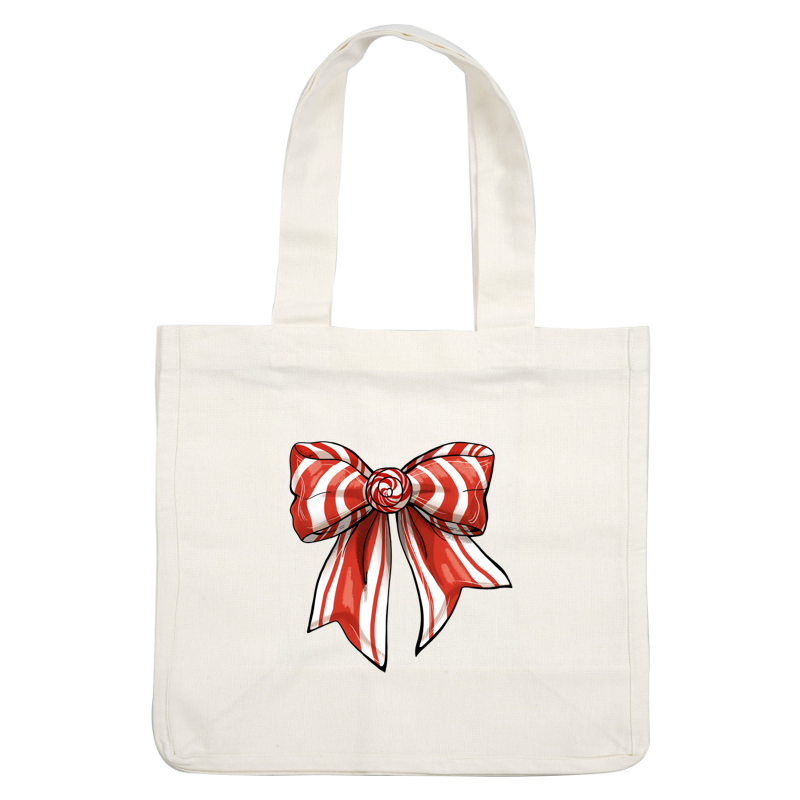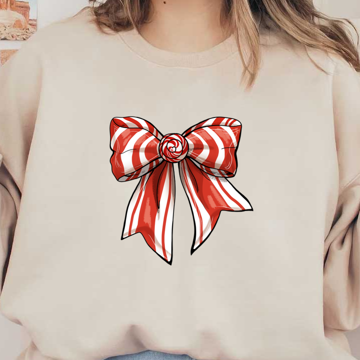 A festive red and white striped bow with a candy swirl center, perfect for holiday decorations or gift wrapping.dtf regular iron