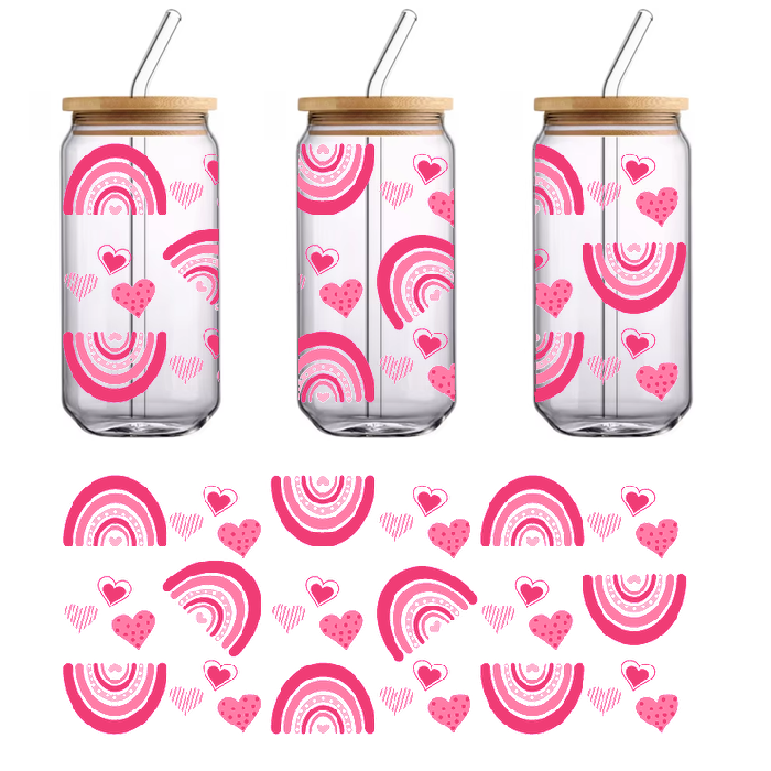 A playful green and pink bow tie with hearts and rainbows.UV Transfers
