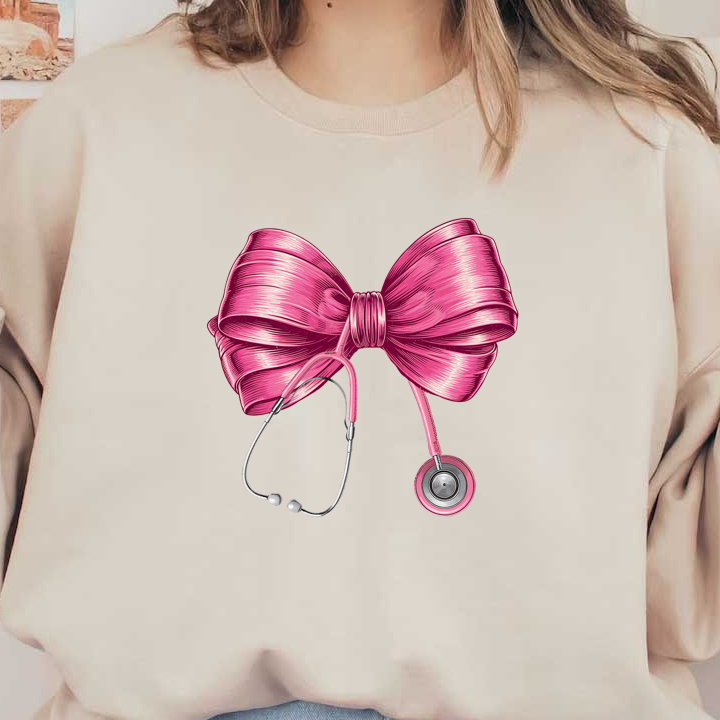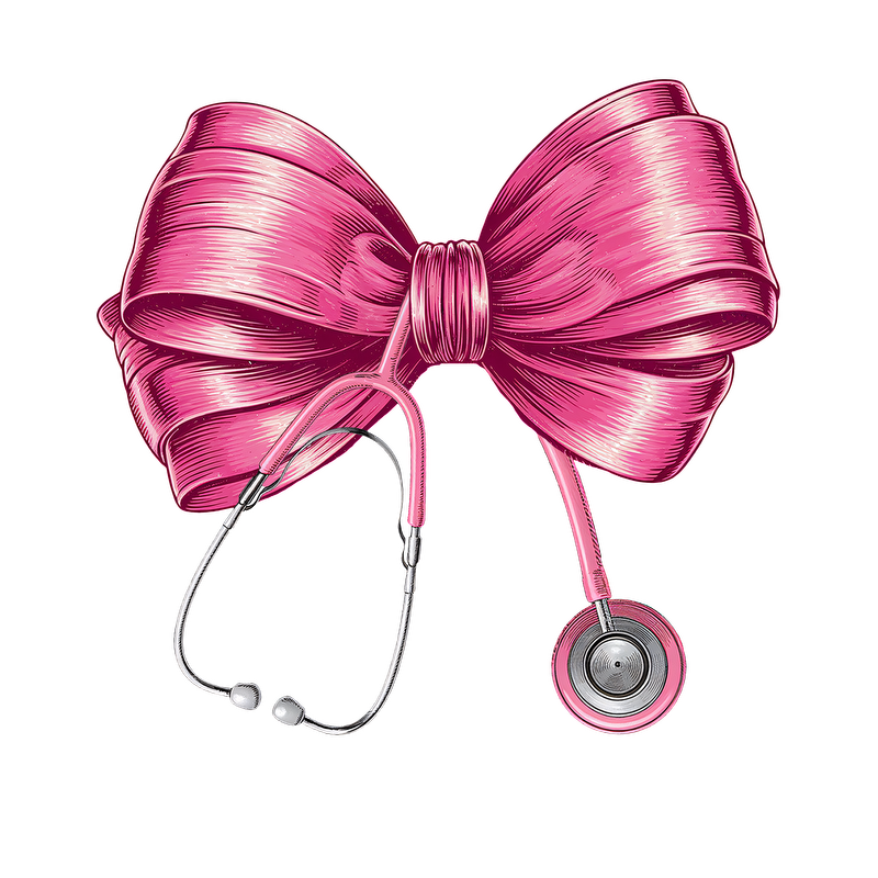 A playful pink bow intertwined with a stethoscope, combining elegance with a nod to the medical profession.DTF Transfers