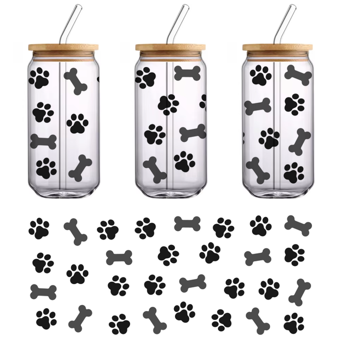 A simple and elegant black silhouette of a cat, showcasing its playful posture with a curled tail.UV Transfers dtf prints