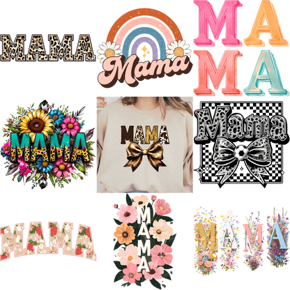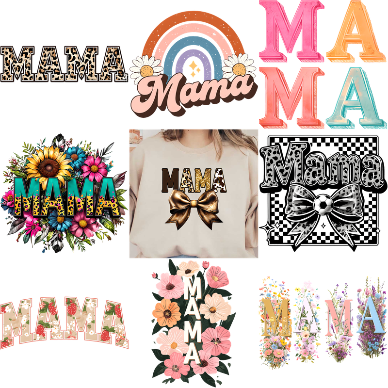A vibrant collection of "Mama" designs perfect for Mother's Day celebrations!DTF Transfers