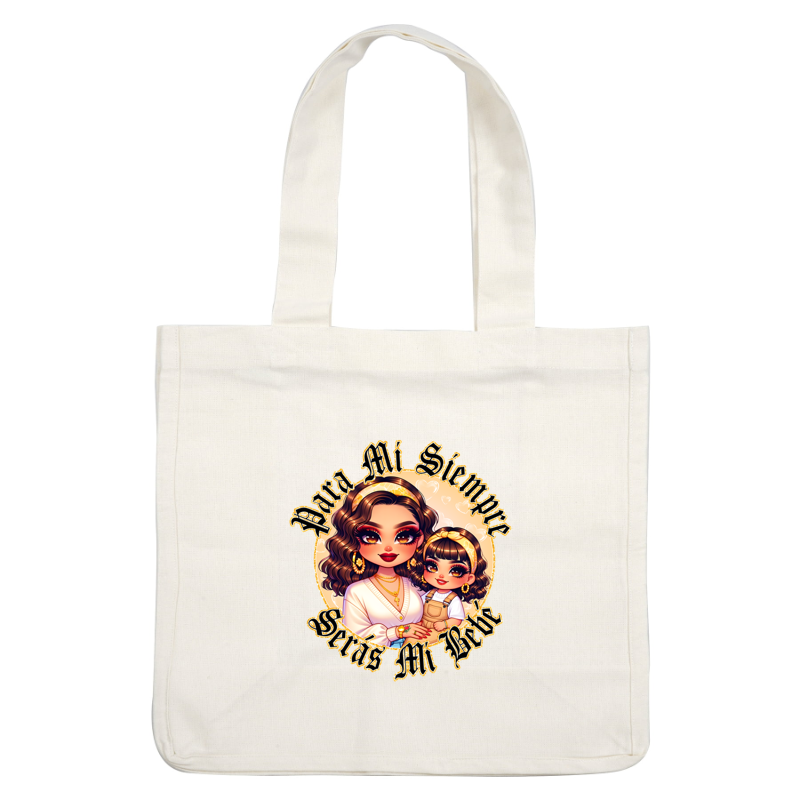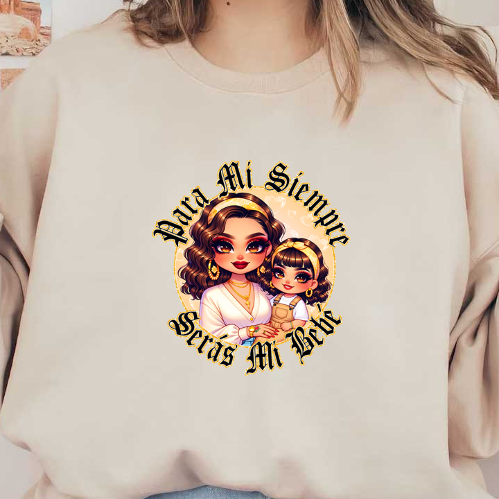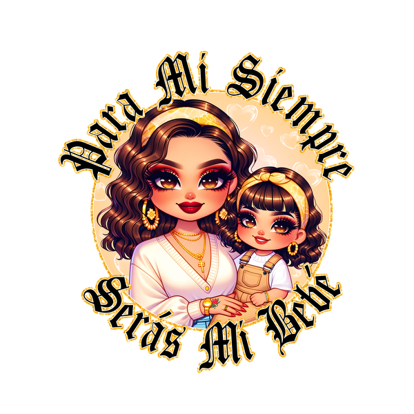 A vibrant illustration featuring a stylish mother and daughter duo, accompanied by the heartfelt text "Para Mi Siempre Serás Mi Bébé."dtf regular iron