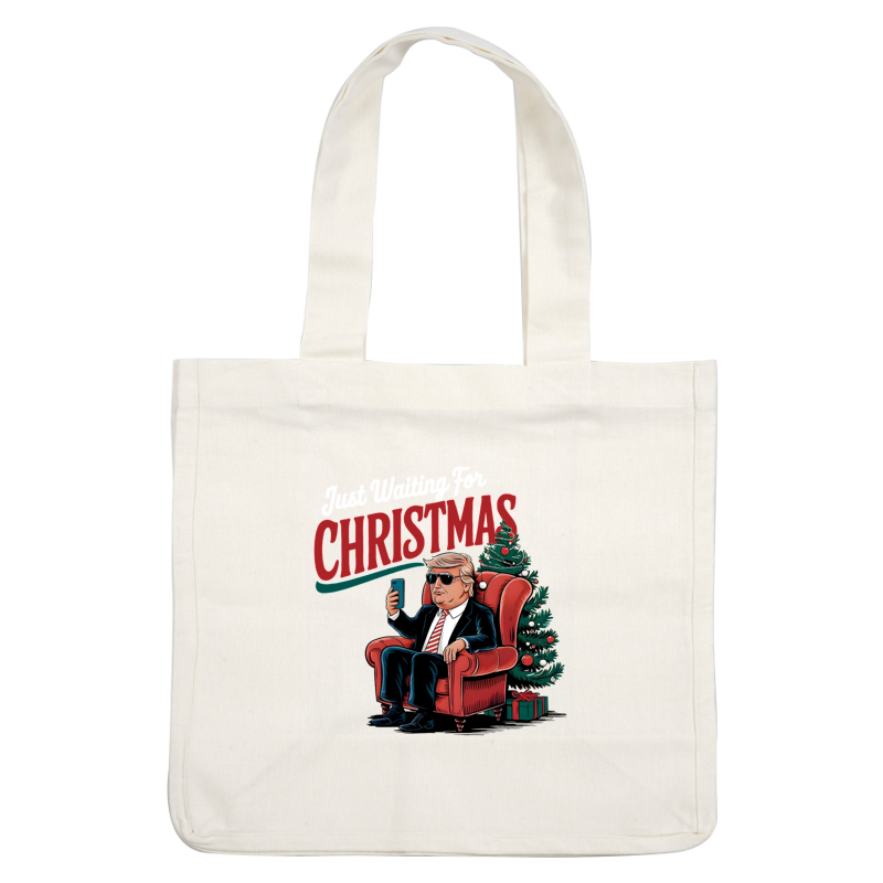 A whimsical holiday graphic featuring a character in a suit sitting in a cozy armchair, waiting for Christmas.DTF Transfers dtf prints