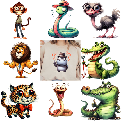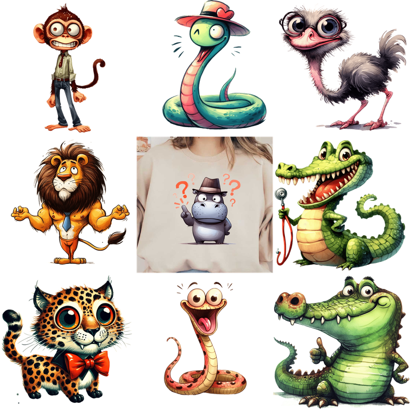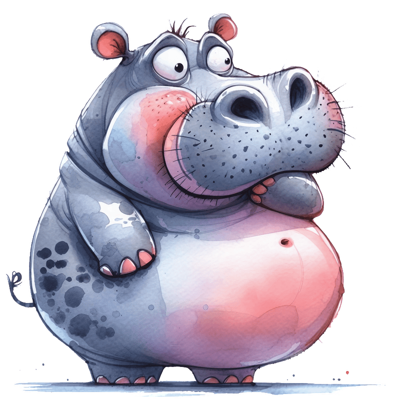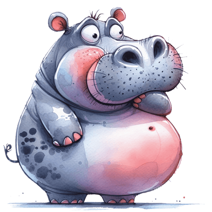 A white t-shirt with a cartoon hippo design on the front.DTF Transfers