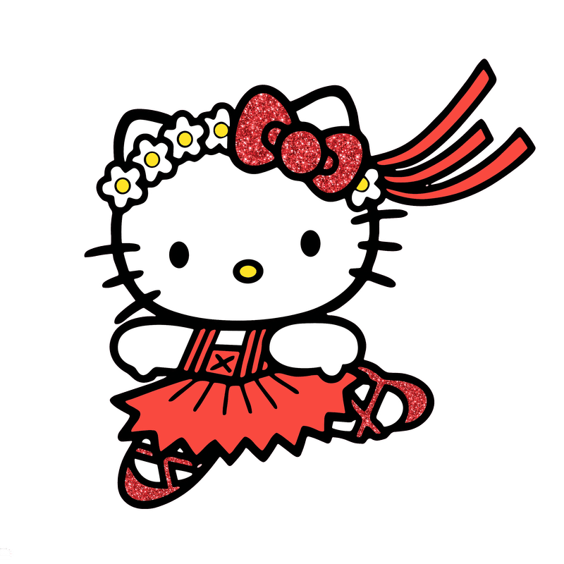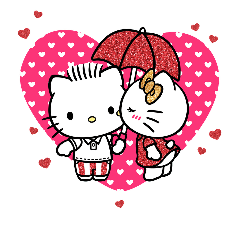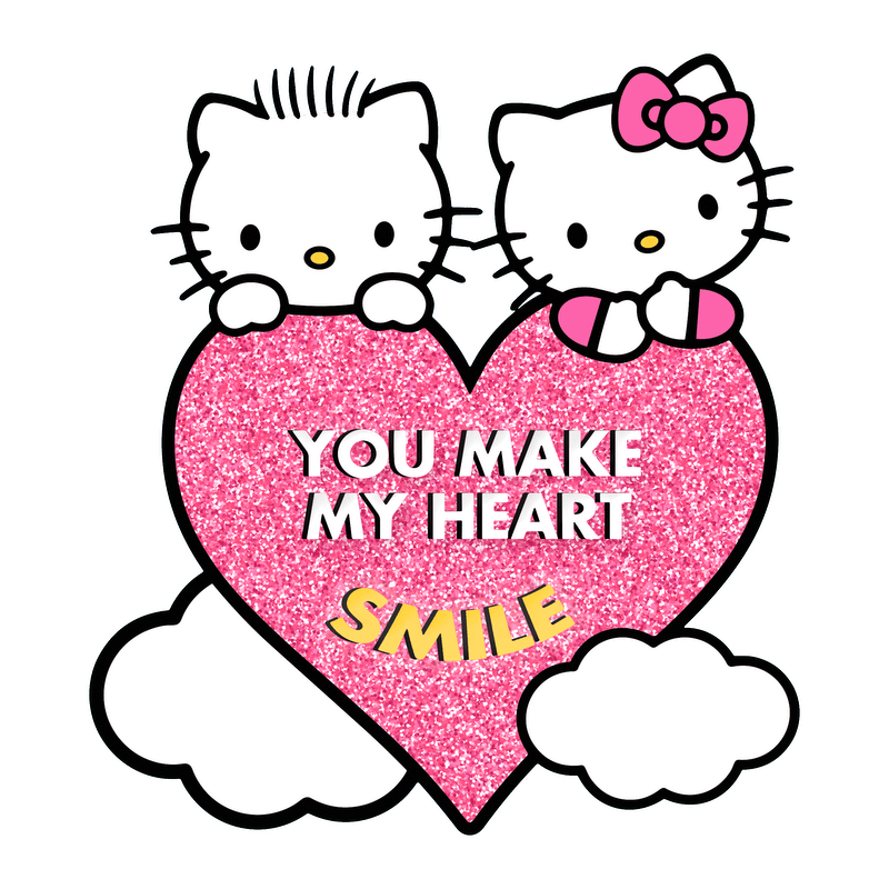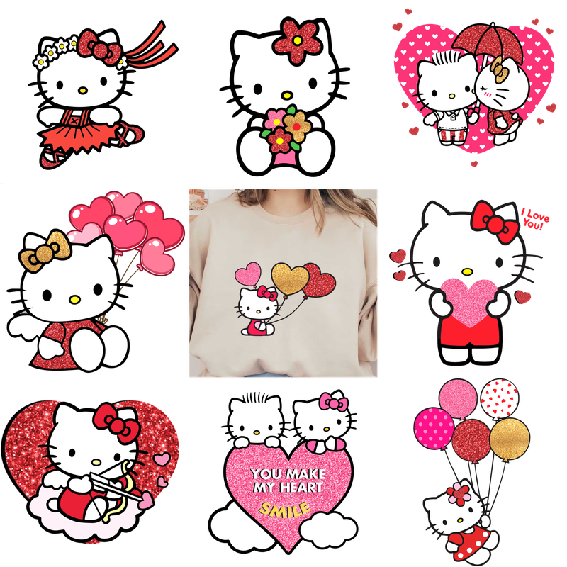 A white t-shirt with a love-themed Hello Kitty design.DTF Transfers