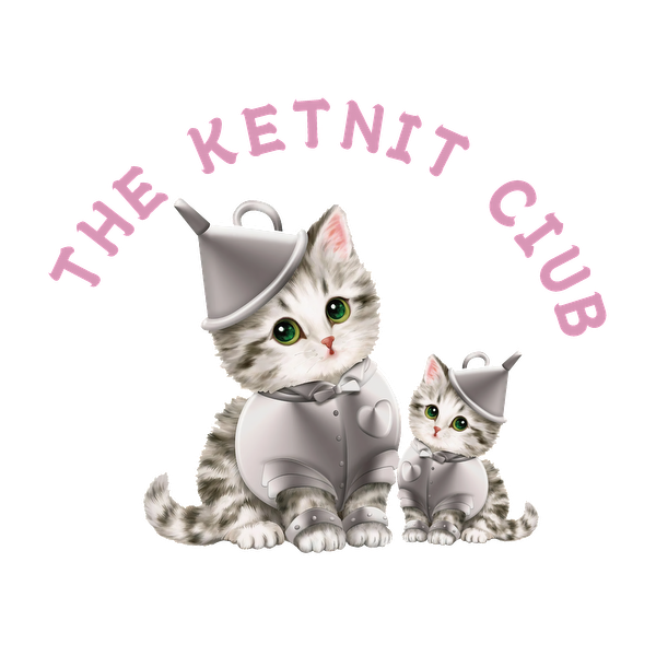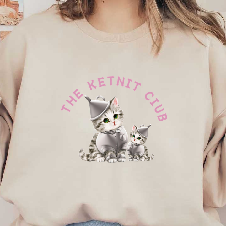 Adorable cartoon kittens dressed in silver tin man outfits, featuring a whimsical font that reads "The Ketnit Club."dtf regular iron