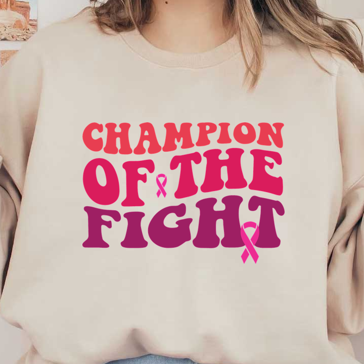 Celebrate resilience with this vibrant "Champion of the Fight" graphic featuring pink ribbon symbols, promoting awareness and strength. dtf prints