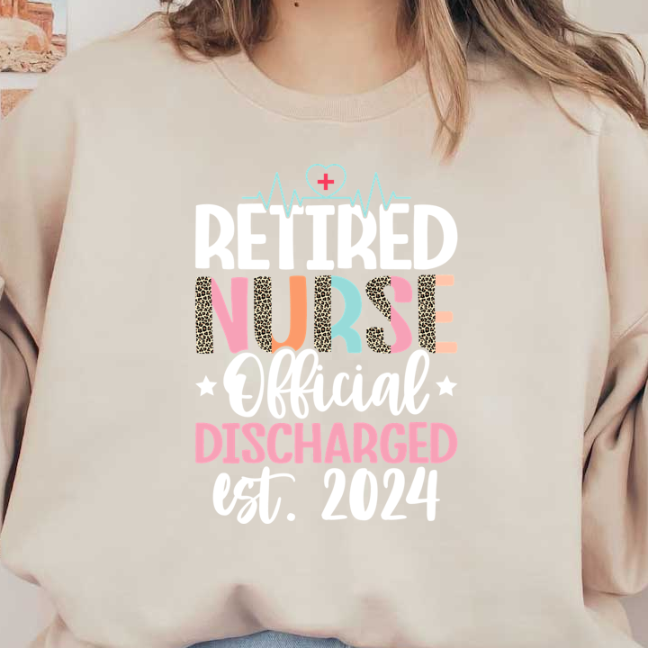 Celebrate your contributions with this vibrant "Retired Nurse" design, featuring playful text and fun leopard print accents, established 2024!DTF Transfers