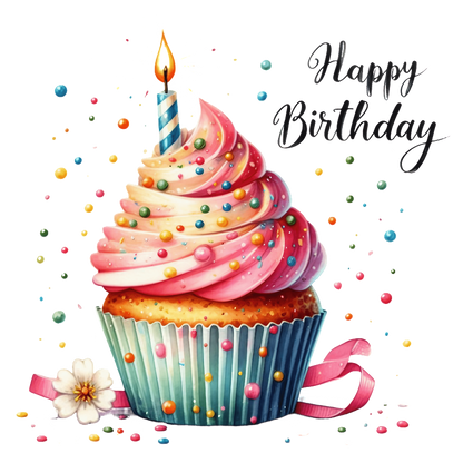 Celebrate your special day with this delightful birthday cupcake, adorned with colorful sprinkles and a lit candle on top!DTF Transfers