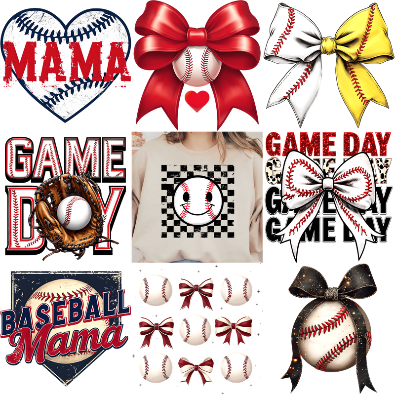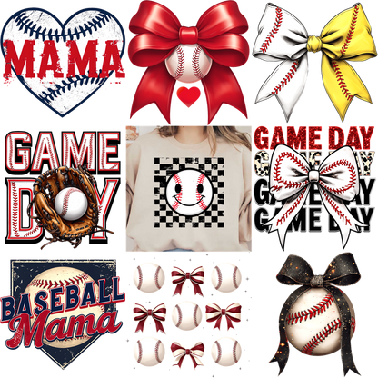 Cheerful baseball-themed designs featuring "Mama" and "Game Day" motifs!DTF Transfers