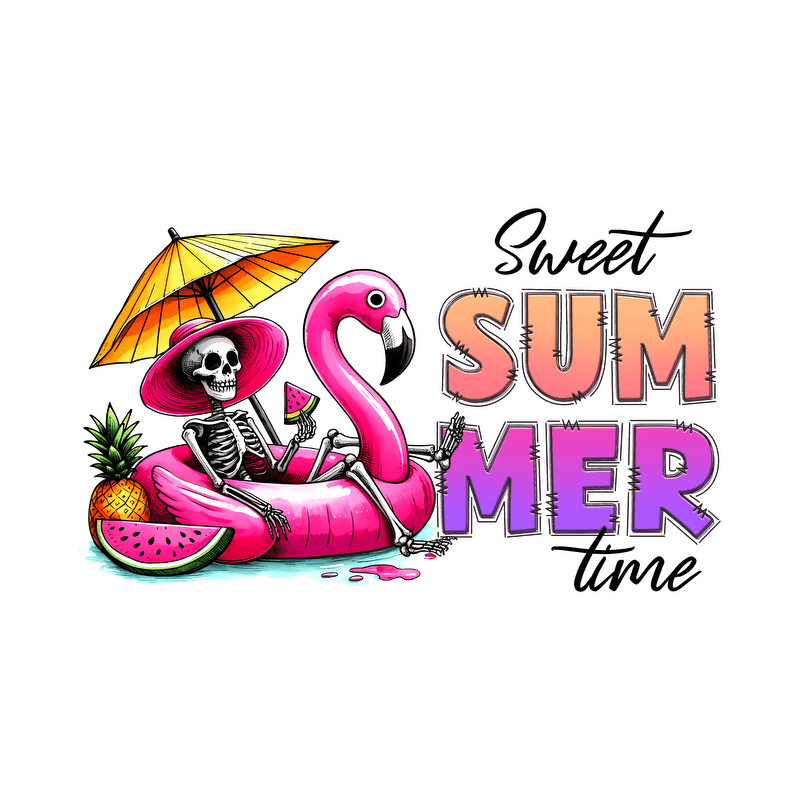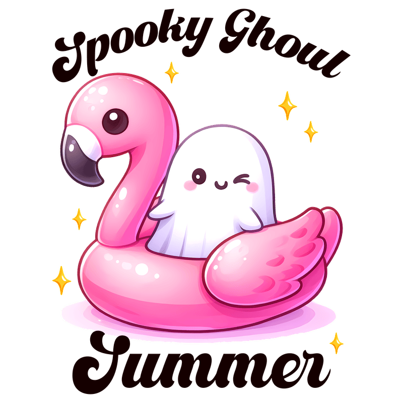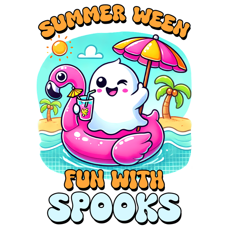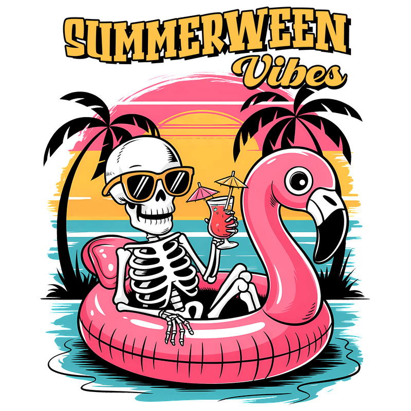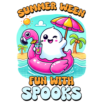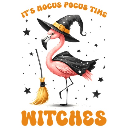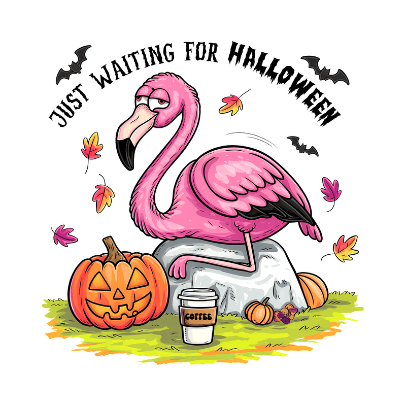 Colorful Halloween-themed flamingo graphics featuring festive pumpkins and summer vibes.DTF Transfers