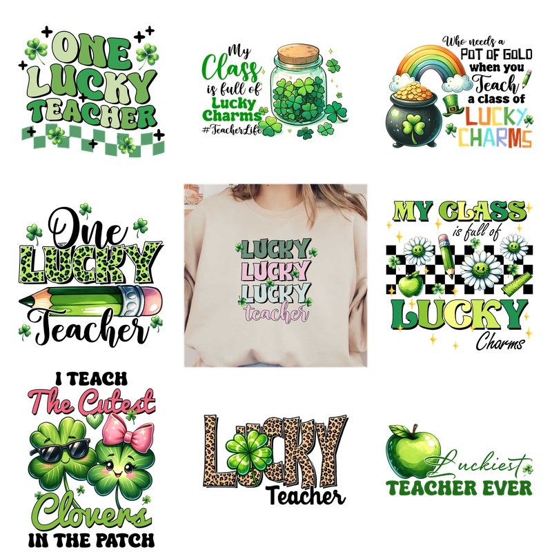Cute and colorful St. Patrick's Day-themed stickers for teachers.DTF Transfers
