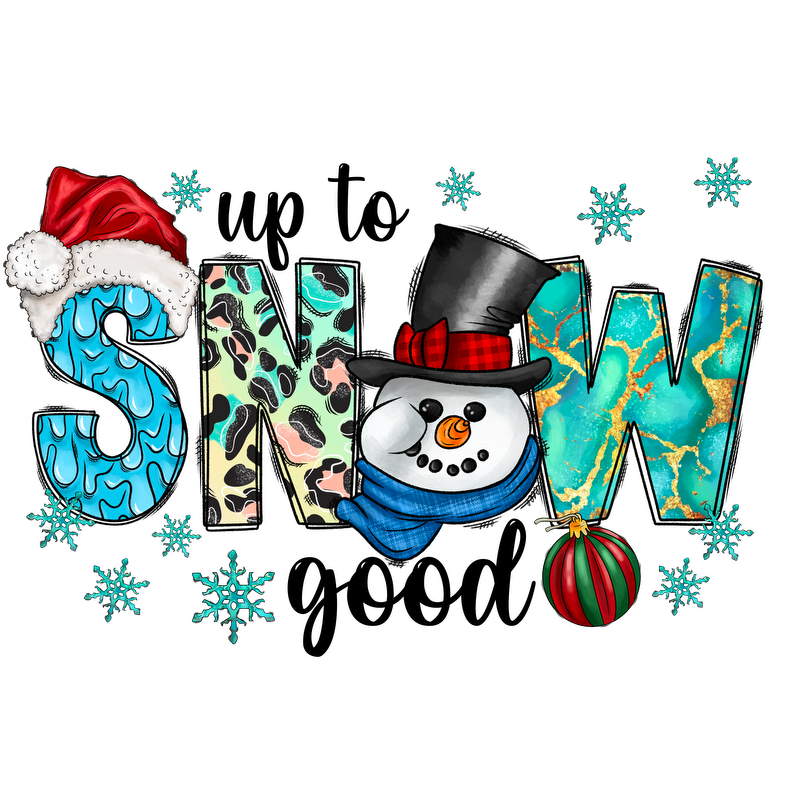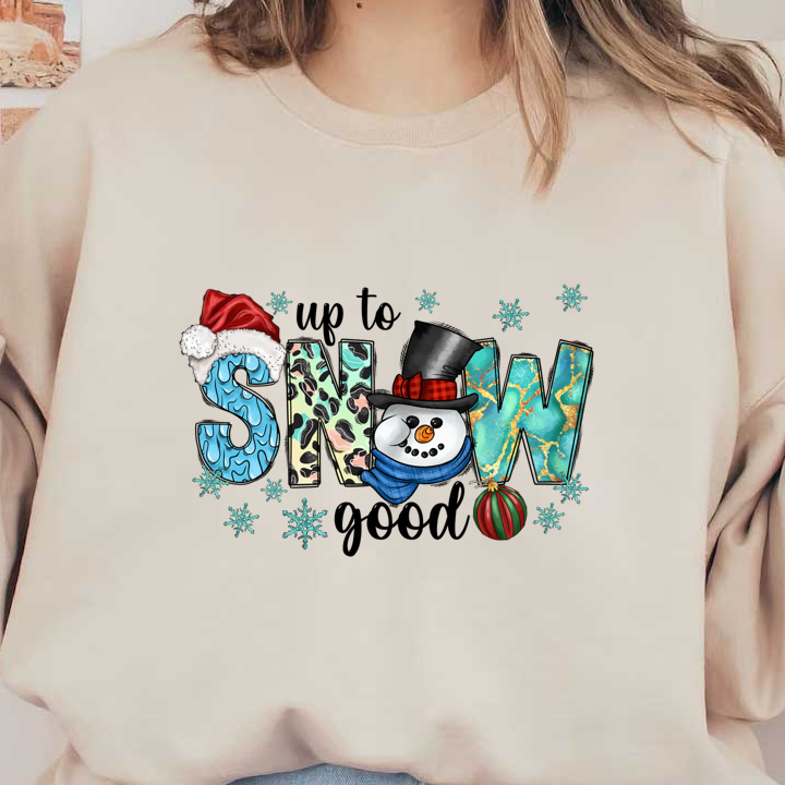 Festive and colorful "SNOW" design featuring a cheerful snowman and holiday elements, perfect for winter celebrations!DTF Transfers dtf transfers