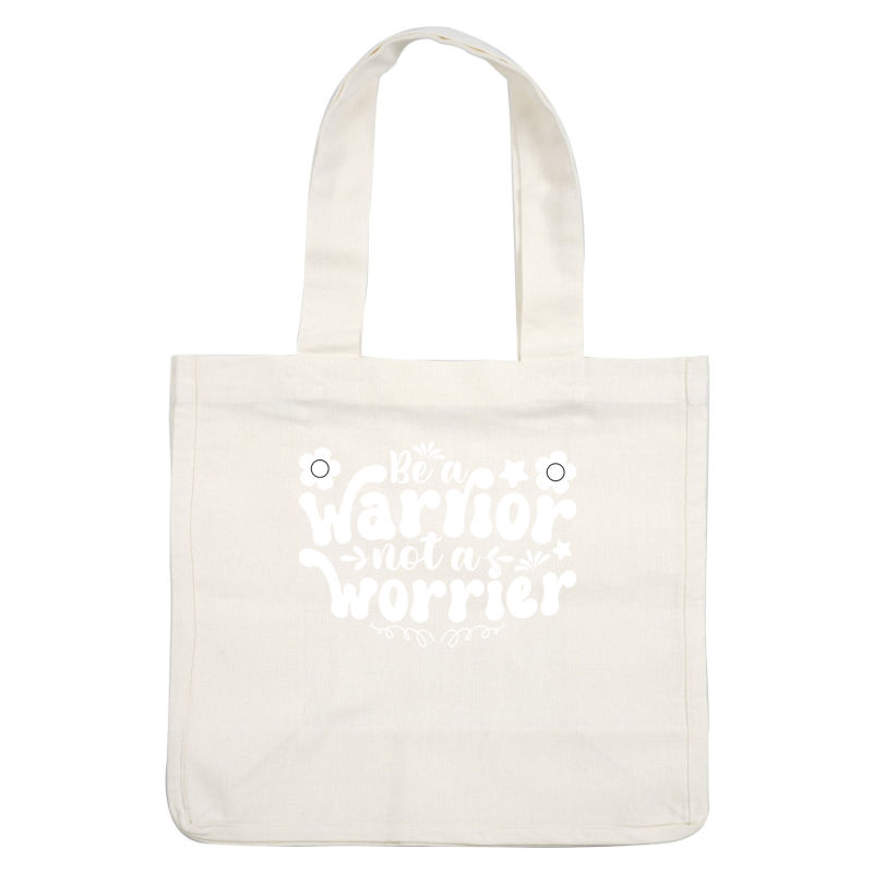 Inspirational quote design that encourages empowerment: "Be a warrior, not a worrier," adorned with flowers and decorative elements. heat press transfers
