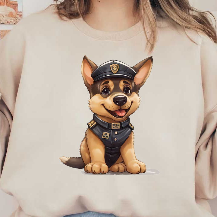 Meet an adorable cartoon puppy dressed as a police officer, complete with a cap and uniform, radiating charm and cuteness! heat press transfers