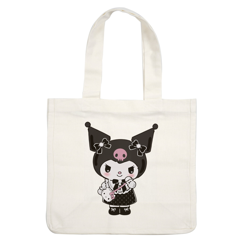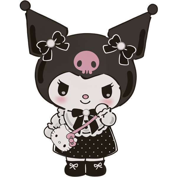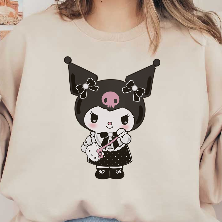 Meet this adorable character in a gothic black dress, featuring a skull-themed hat and a cute handbag!DTF Transfers heat press transfers