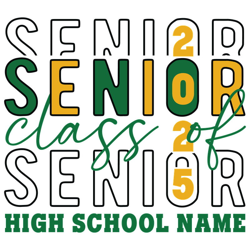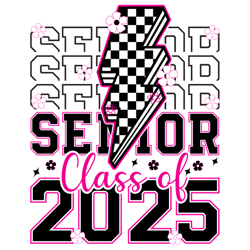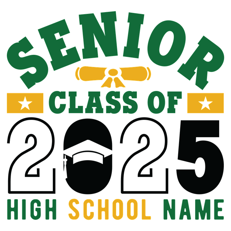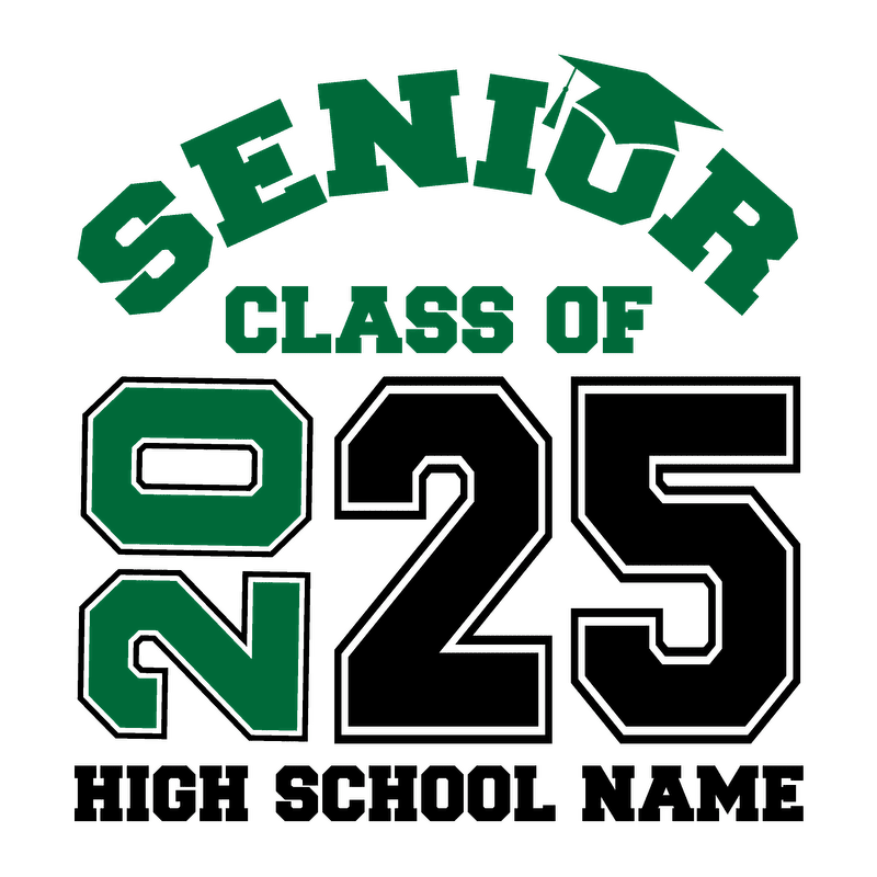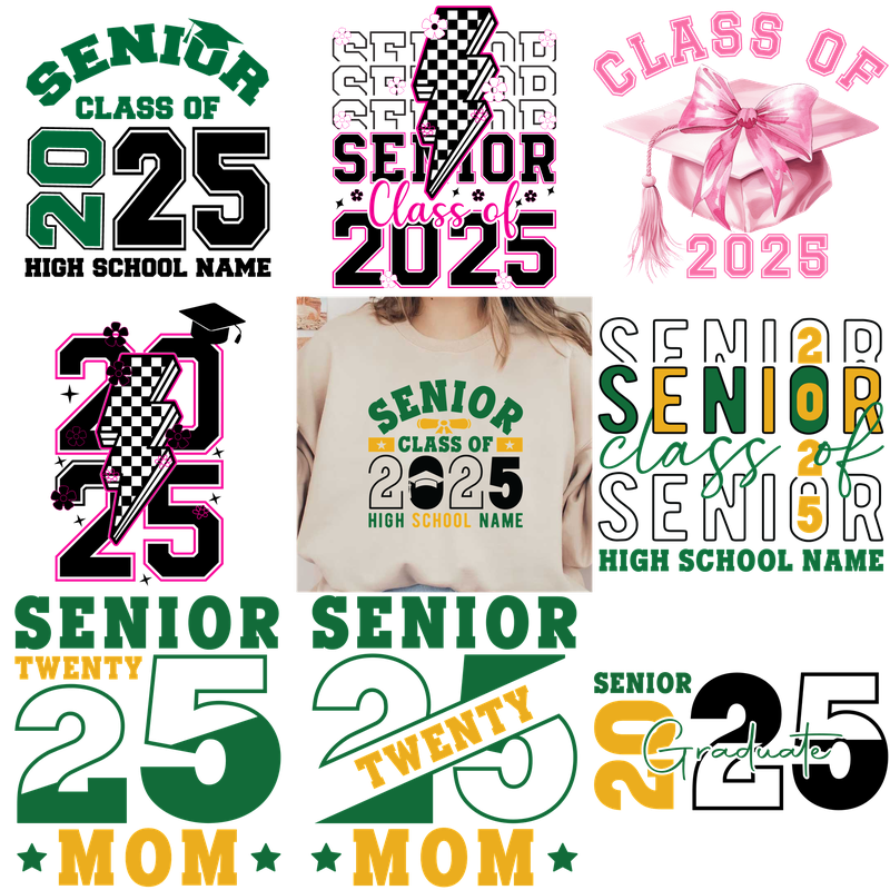 Senior class of 2025 tees in various colors and styles.DTF Transfers