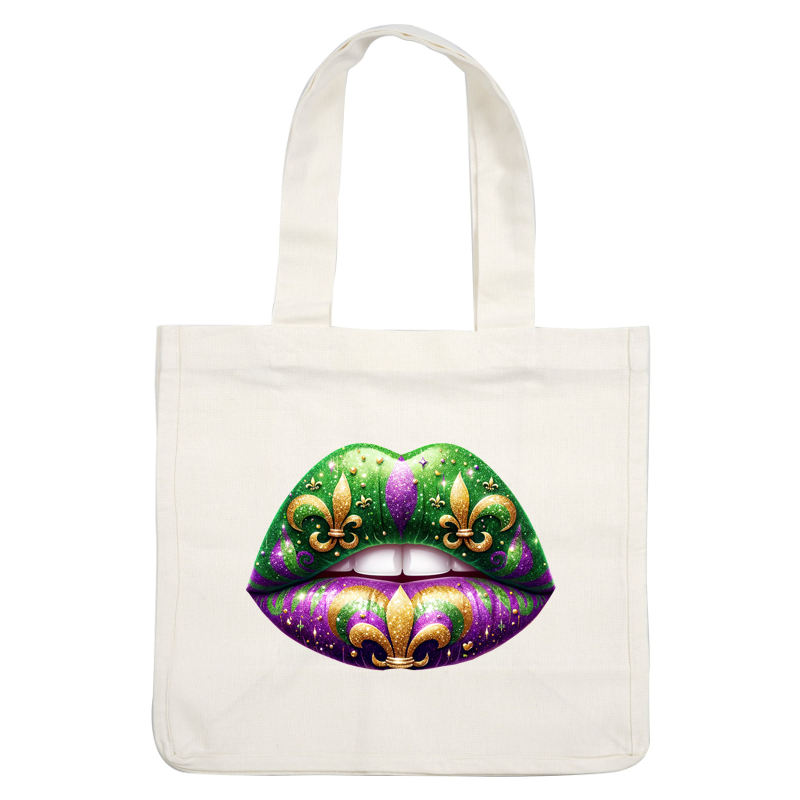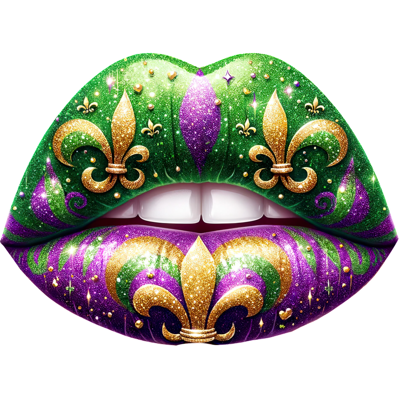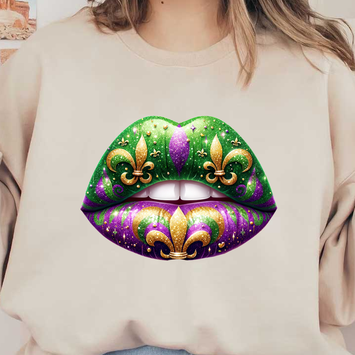 Sparkling and vibrant, these decorated lips feature a stunning mix of purple, green, and gold with intricate patterns.DTF Transfers