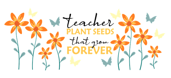 Teacher plant seeds that grow forever, typography image orange flowers.UV Transfers