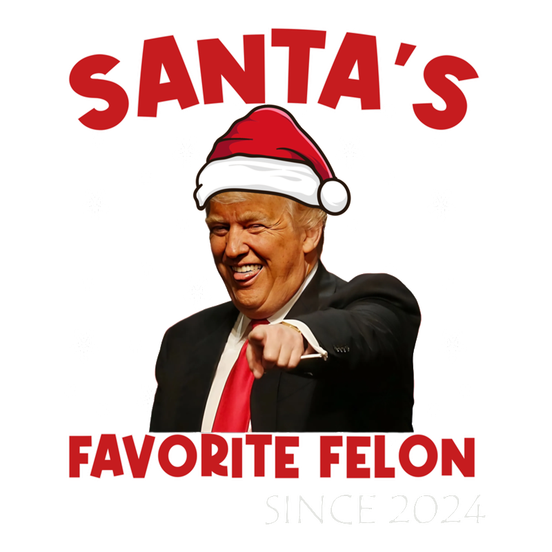 This festive graphic features a humorous design with a Santa hat, proclaiming "Santa's Favorite Felon Since 2024" against a snowy background.DTF Transfersdtf regular iron