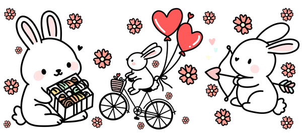 "Valentine's Day gift box surrounded by hearts and flowers."UV Transfers