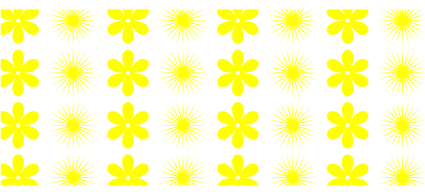 Yellow flowers on a green backdrop with distinctive petals.UV Transfers